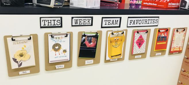 Pitching staff favourite cards at the counter is easy and it boosts sales. It is also personal, providing customers with an insight into the cards your team members love. I recommend every card retailer try this.