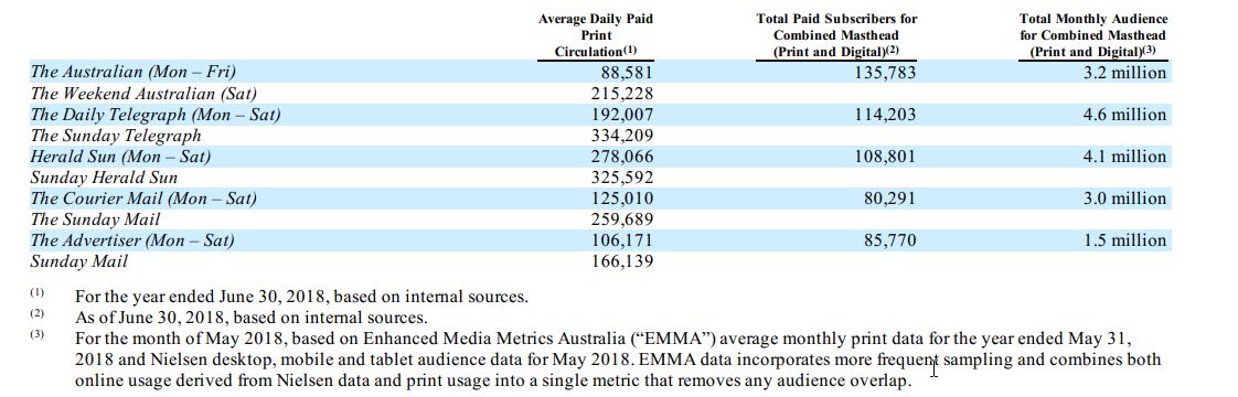 News Corp Australia is one of the leading news and information providers in Australia by readership, owning over 200 newspapers covering a national, regional and suburban footprint. During the year ended May 31, 2018, its daily, Sunday, weekly and bi-weekly newspapers were read by over