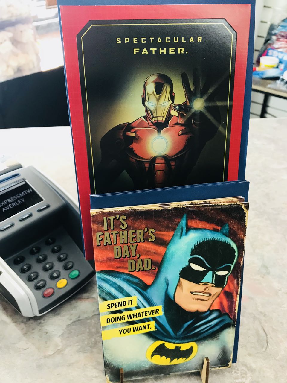 This placement of two Father’s Day cards at the counter has been working a treat in part because of the tactical placement, next to the EFTPOS terminal, and in part because of the stand-out cards themselves.