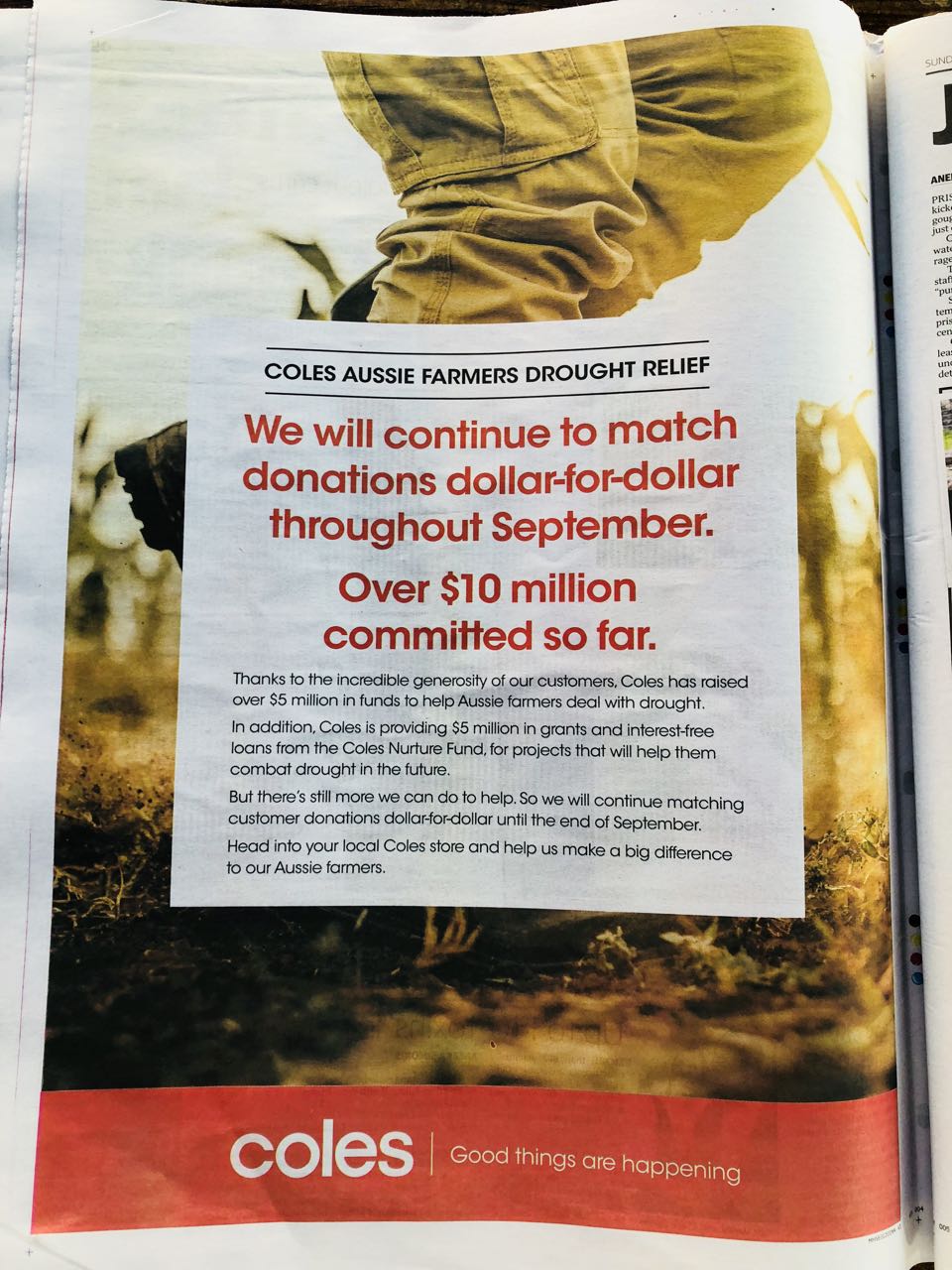 Maybe rather than spending big telling people how good it is at helping Aussie farmers, Coles should actually pay farmers fairly for their produce.