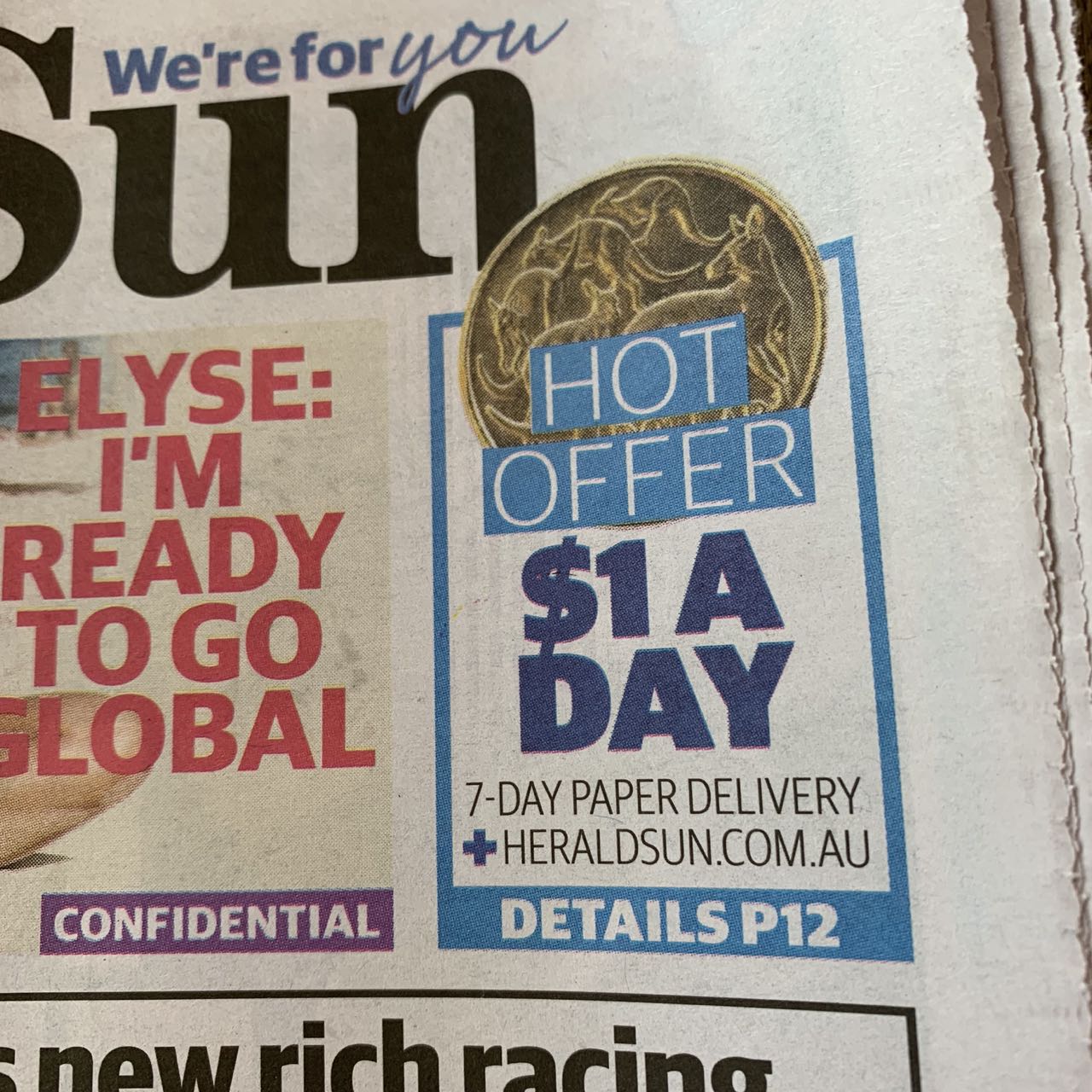 The ad placed in a perfect position on the front page of the Herald Sun yesterday pitched a campaign aimed at cutting the daily visit to the newsagent, or any other retailer, to buy the newspaper. It pitched a $1 a day home delivery, an offer that must be loss making for the company. An offer that makes buying the newspaper at retail look expensive.