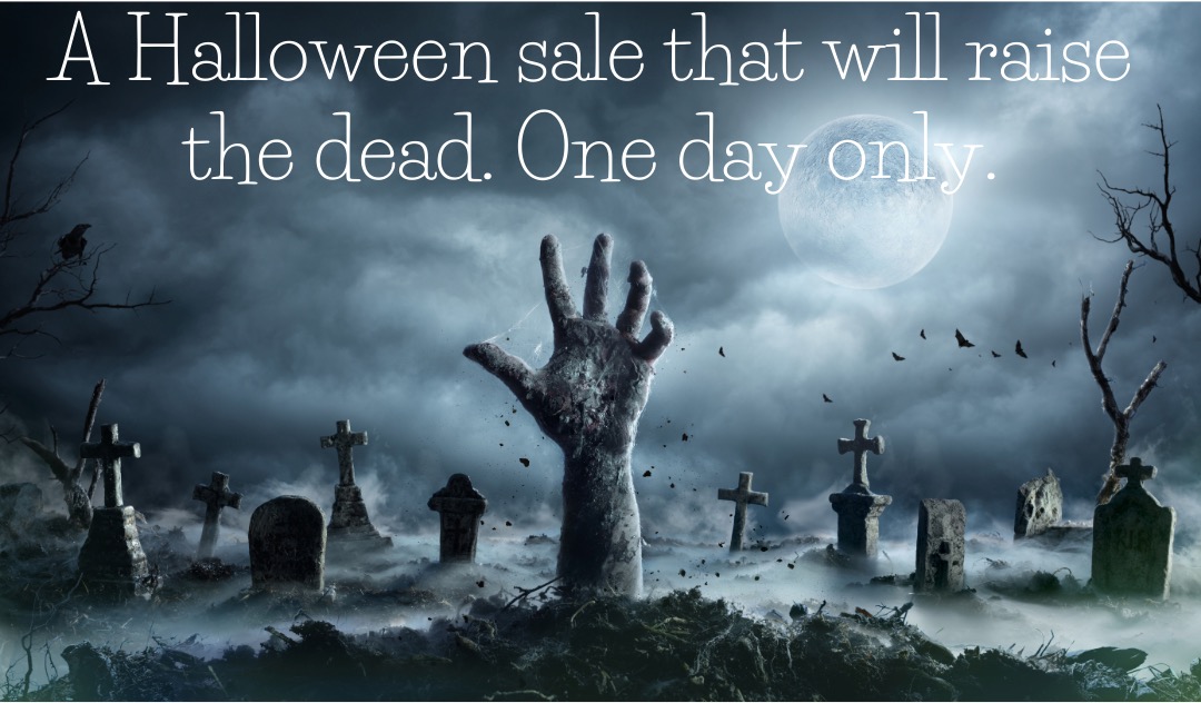 FYI, here is a quick and dirty, unbranded, social media image I made to promote a Halloween sale. It’s designed to get attention and, like all good social media content, be disposable.
