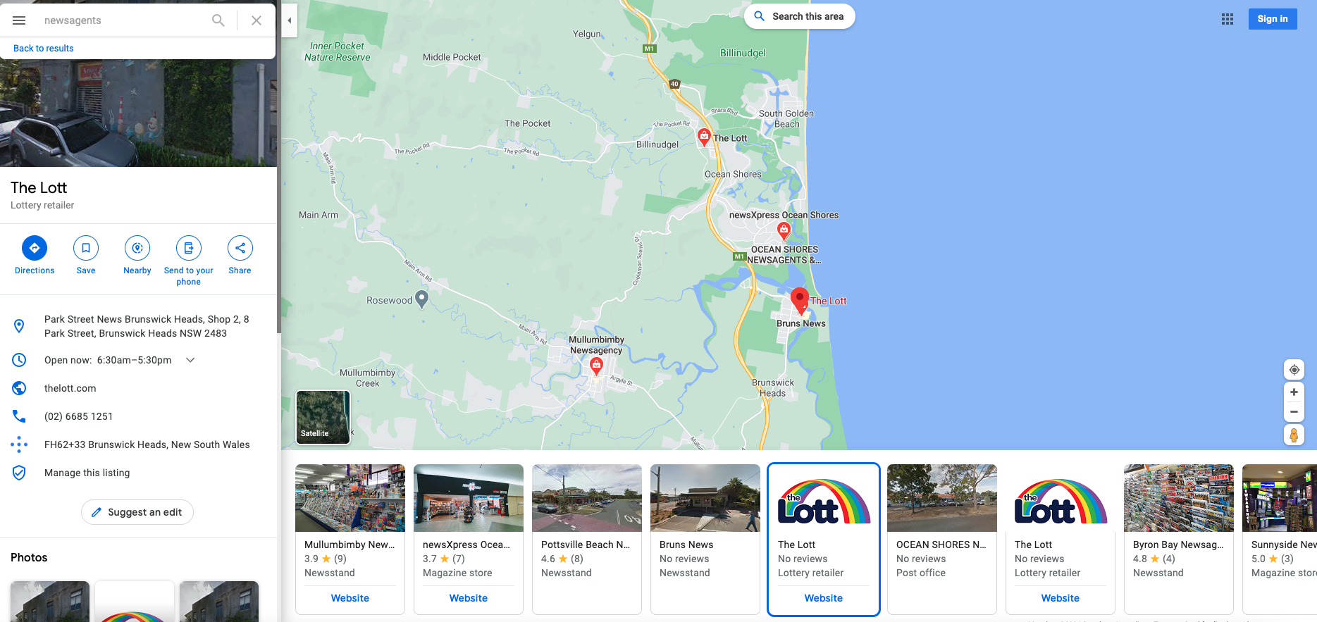 Maybe Tabcorp, maybe another party, has been updating lottery retailer details in Google Maps, indicating TheLott as the business name and products sold, but including, often the newsagent phone number and open ing hours.