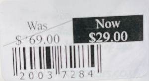 Major retailers often use was / now price labels to show shoppers a product discount. This type of product discount labelling is rarer in small business retail. But, it shouldn’t be. It works.
