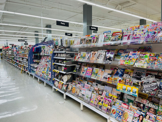 A popular and successful Coles supermarket in Melbourne has moved magazines and cards to the back of the shop. Whereas previously they were at the entrance to a busy aisle, near the entrance to the self checkout area, they are now located at the quieter end of an aisle.