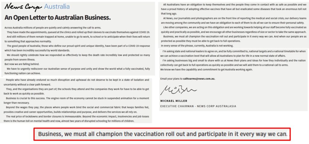 You only have to look at the shouting from News Corp to the Victorian government Andy who support them through 2020 and plenty of 2021, or watch Sky News After dark, or read The Australian or read opinion pieces by Dolt and others to see my point.
