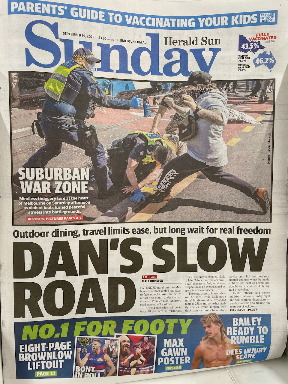 The Herald Sun has run story after story about the lockdowns, personalising attacks agains the premier. They preference appears to be for opinion, to encourage a set of views, more so than reporting. You only have to see today’s front page to see that in action.