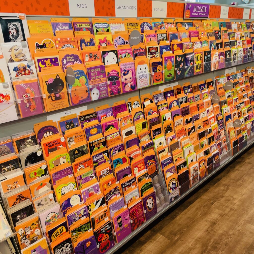 This range of Halloween cards in a local Hallmark store speak to the scope of this season. Elsewhere in-store there are party items, home decor items and cards products.