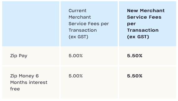 Zip sent out a notice to retailers yesterday about a 10% increase in the cost of Zip as a payment option for retailers.
