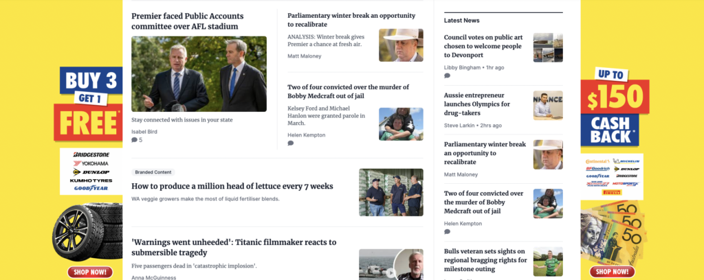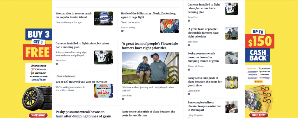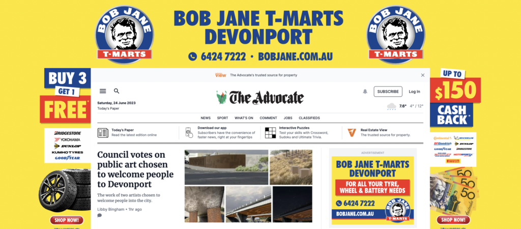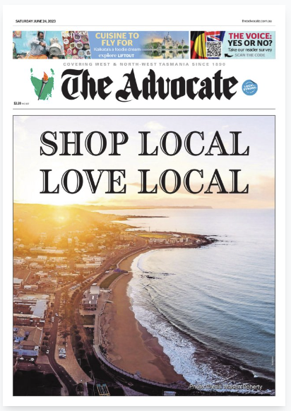 The Advocate in Tasmania pitches shop local love local ·June 24, 2023 ·Mark Fletcher ·1 Comment While this is the front page of the paper, at their website stories supporting the front page splash are not obvious. 1 likes Newspapers Join the discussion Pingback: NEWS 24 Leave a Reply Cancel replyYour email address will not be published. Required fields are marked *Name * Email * Website Enter Code * Captcha Comment * Δ Post navigation Next ArticlePrevious Article
