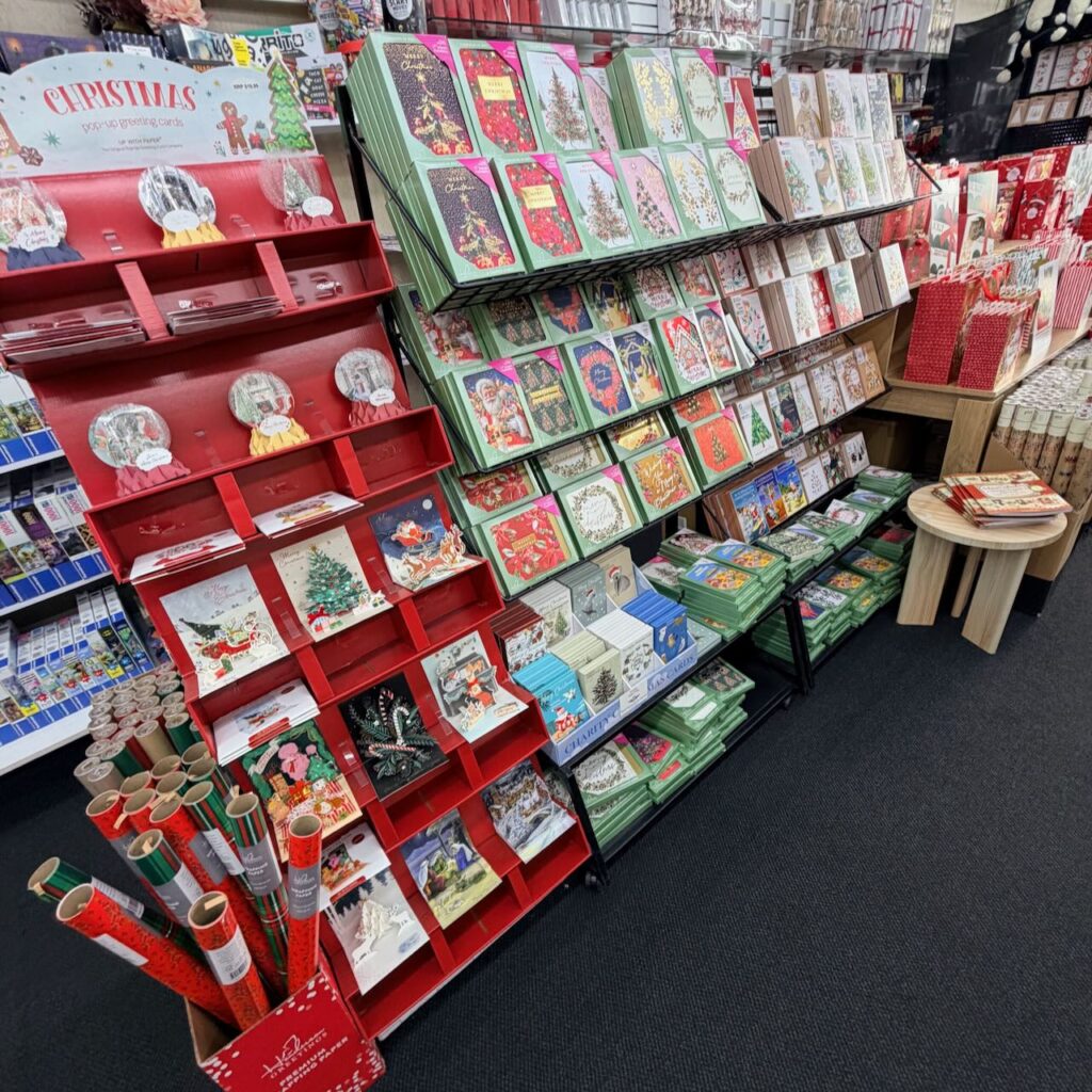 The photos don’t show the full extent of Christmas that we have at Malvern either. We have more Christmas cards and more gift packaging further into the shop.