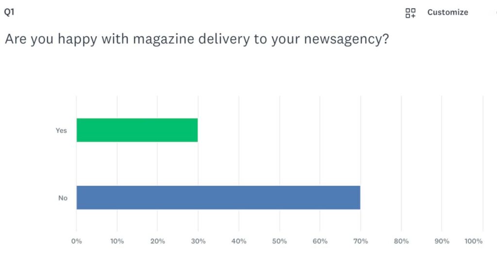 A primary finding of the survey is the level of unhappiness among newsagents. 70% of respondents stated they are not happy with the current magazine delivery to their newsagencies. This represents a significant majority of the industry.