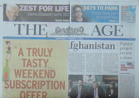 For the second time this week, The Age newspaper has covered its page one lead store with an ad, this time a house ad for subscriptions.  I feel sorry for the journalists and editors having their good work covered in this way.