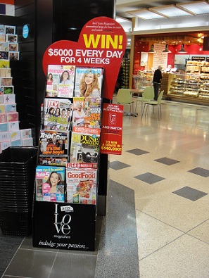 ilovemags2.JPGWe are promoting the ACP I Love Magazines promotion at the entrance to one of my stores with this display facing into the shopping mall.  While we are only two days in, I am tracking incremental business for Women’s Day and TV Week plus Grazia in one store.