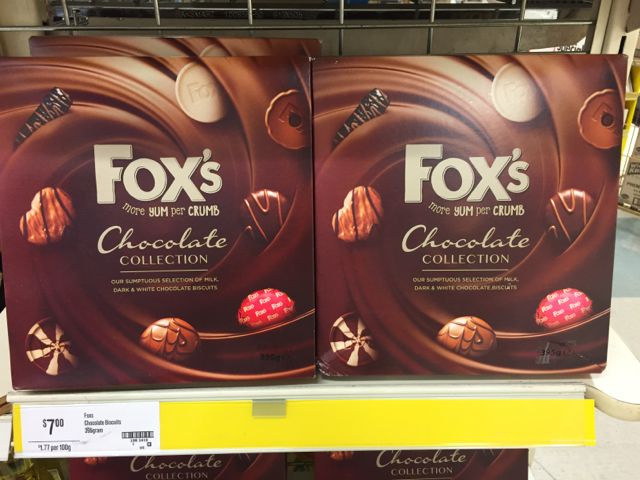 Most recently I have noticed biscuits from the UK that are less than half similar style and size biscuits made in Australis. Yesterday I noticed these chocolates – also from the UK and also much cheaper than Aussie made equivalent product.