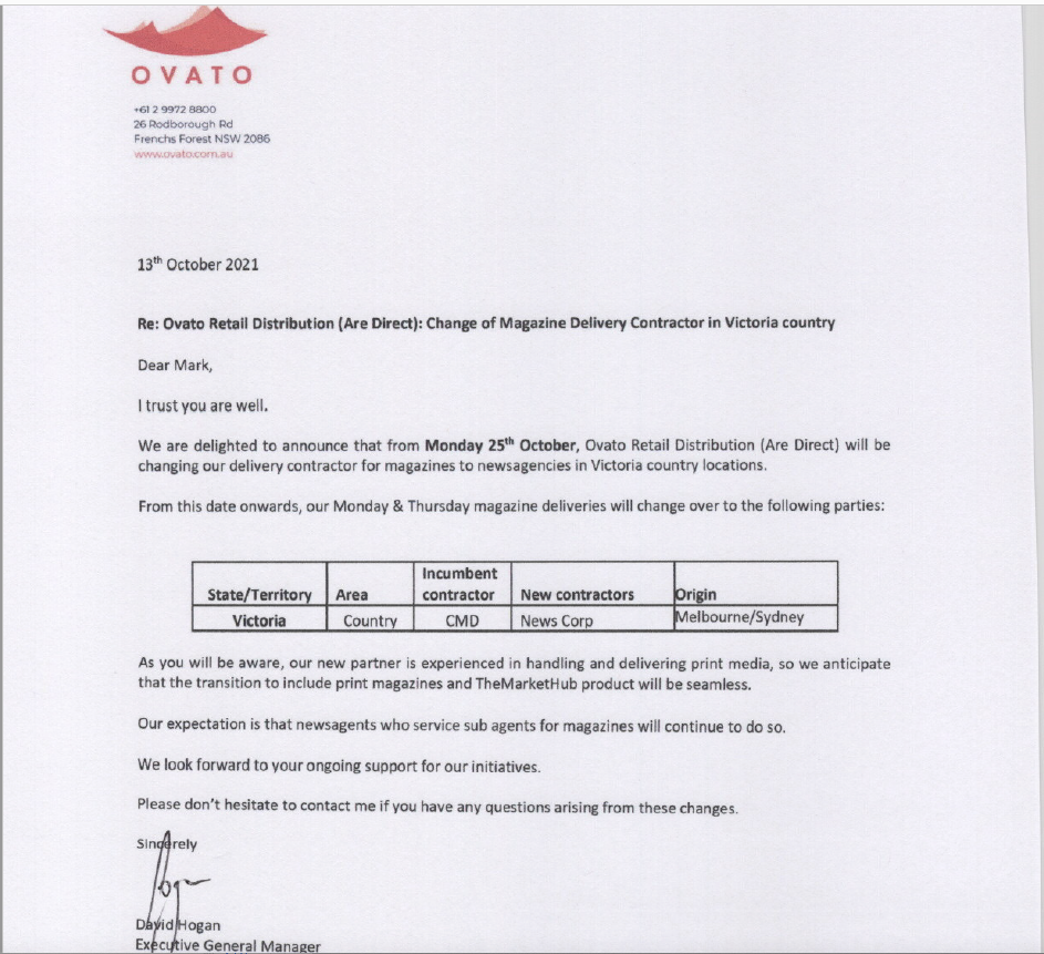 Newsagents are being communicated on the changes 4 weeks in-advance of the change and these comms include the FAQ’s that I attach for reference. These are very similar to what was shared when we ran the Vic metro trial. We are also supplying A2/A4 posters prior to the delivery change to help stores communicate the delivery change to their customers.