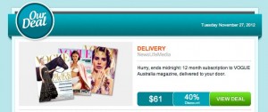 With the majority of newsagency purchasers of New Idea weekly regulars, this deal would appeal to them. However, the detail in the fine print that the magazine will arrive a few days after on-sale makes the offer less appealing. But people won;t see that unless they dig. What the do see is the magazine is accessible at $1 an issue for 12 issues.