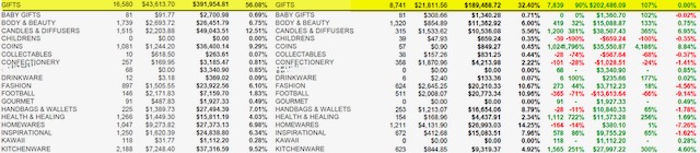 - Stationery revenue: Down 5%. This is also an unfair measure because stationery now includes plenty of gifting items as it has changed.