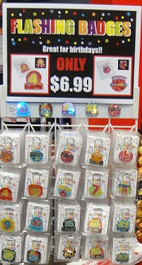 flashingbadges.JPGThese simple flashing badges have been selling like hot cakes at one of my newsagencies. We’ve had them for a month now and I am surprised at how well they have gone in such a short time. It is terrific seeing a shopper add a badge to a greeting card purchase.