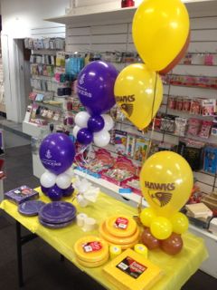 I was in a newsagency yesterday and saw terrific AFL Grand Final engagement. They had several displays in-store, covering two entrances, with different balloon displays available for purchase.