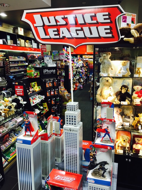 IMG_6214The terrific floor display unit in the newsagency supporting Justice league licenced product is attracting new traffic. While predominantly male, younger kids do drag in parents including mums and sisters. This new traffic is valuable to be business – the shoppers attracted are purchasing other items from us and this is helping drive sales of magazines, gifts and cards.