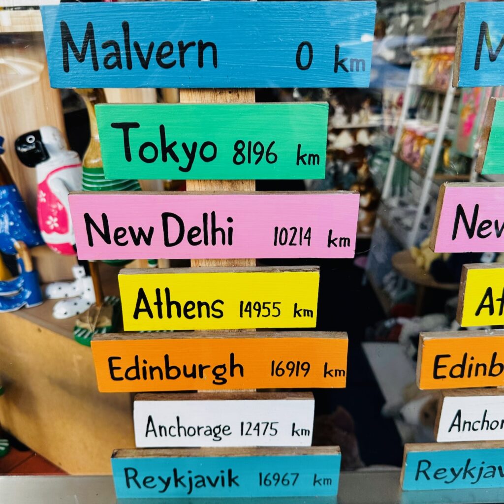 One way we are doing this in my shops is with locally personalised signs designed to inspire dreams of travel destinations. Here’s the sign i9n the window of our Malvern shop.
