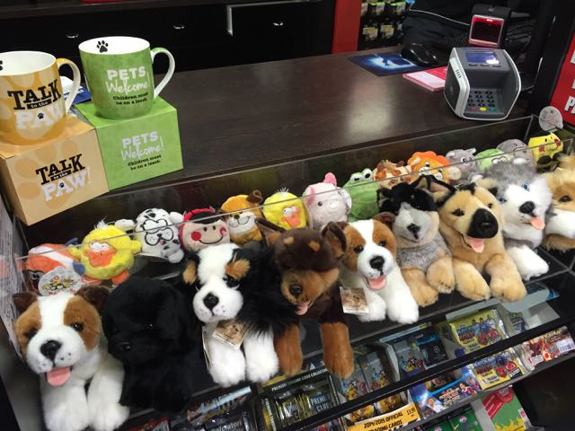 We have plush dogs and cats back at the counter as part of a front of store refresh.