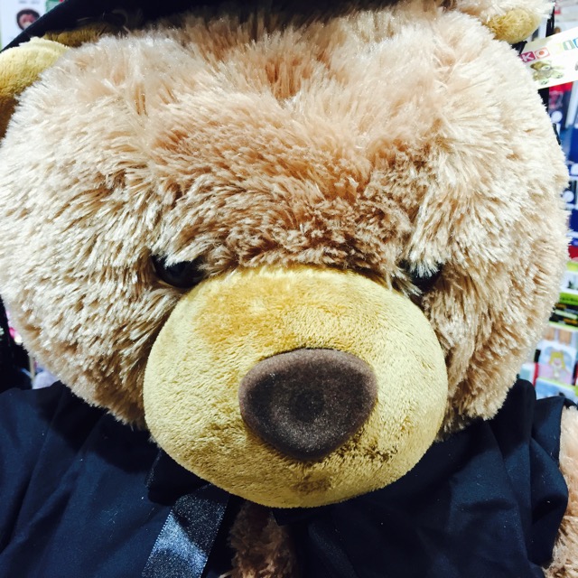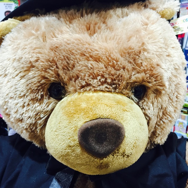 Take this large graduation bear we have in the newsagency. In the photo taken immediately after he was put on display, he looks okay – nice and big, cuddly, well made. But to me he didn’t look quite right. He looked average, not as alive as I felt he could look, not as appealing to shoppers walking past and glimpsing the display.