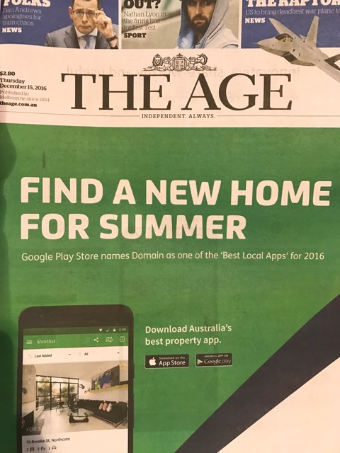 We are seeing this more and more, the Domain brand given front page treatment, covering the news in The Age. It plays into speculation about the future of the newspaper.
