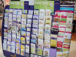 We have our Easter cards displayed on movable units and thereby not reducing space from lifestyle cards. Cards in drawers don’t sell.