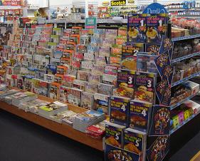 Like many other newsagents, we received many copies of each edition of Annette Sym’s Symply Too Good To Be True cookbooks on Friday. While I suspect (hope) that the Network Services magazine allocation system made a mistake, we are trying to make the most of the situation by creating a display at the entrance to our main magazine aisle. We have dressed an old stand and given it over entirely to Annette Sym’s popular brand. I certainly saw customers browse products from the stand today after they had made their selection of another title elsewhere in the aisle.