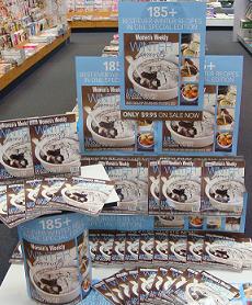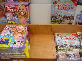 The photo shows our latest use of a cardboard magazine fixture we received late last year. Shop Til You Drop from ACP Magazines is the latest title to benefit from our reincarnation project. We love this little cardboard unit because we can use it anywhere – right now it’s in the middle of the dance floor, every customer sees it as they enter the shop. This is the perfect place to promote Shop Til You Drop.