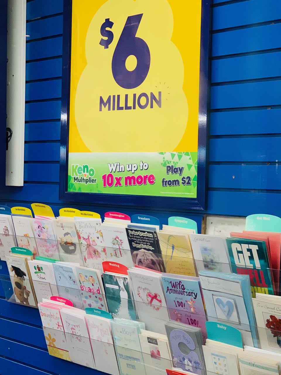 Opposite this placement of magazines, papers, stationery and lottery products and our of shot is a small stand of cards.