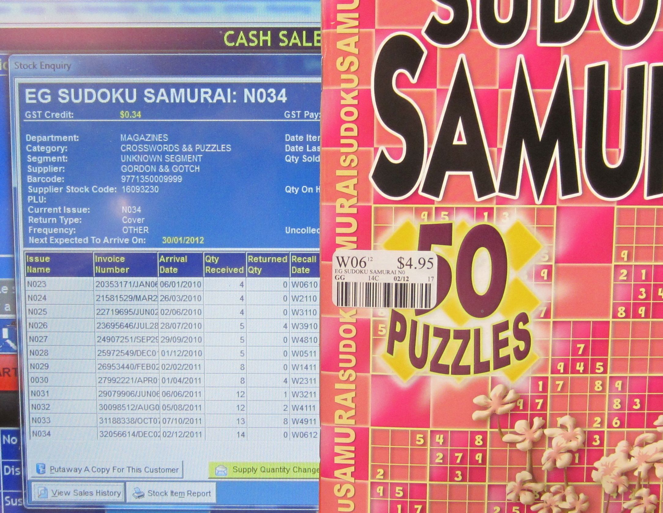 I don’t understand the decision by people at magazine distributor Gordon & Gotch an or their allocations people to move us from eight copies of Sudoku Samurai to fourteen. We had one sell out at eight copies, when the other newsagency in the centre was closed (and about which Gotch was advised).
